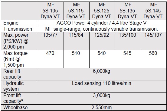 All five MF 5S-series models from 105hp to 145hp with mid-range Efficient and top Exclusive specification are available with Dyna-VT transmission. Those buying base Essential specification machines have the choice of the Dyna-4 or Dyna-6 gearbox.