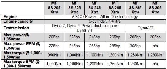 MF 8S Xtra Series – range specifications