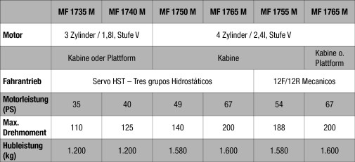 Die Spezifikation der Baureihe Massey Ferguson MF 1700 M