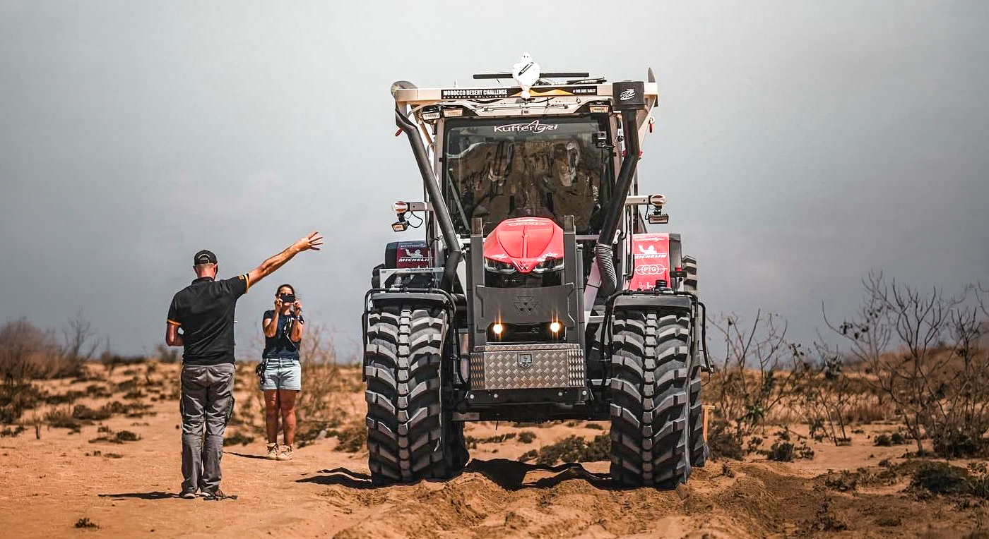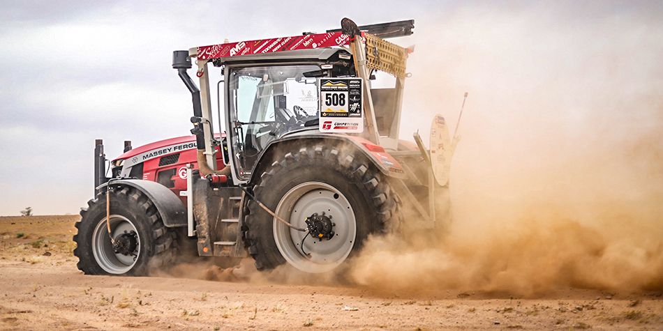 Two months later, the competition began. The first impression was categorical; racing teams were impressed to see a tractor participating, with such a mechanical team. For a truck, there are usually 14 people; for the MF 8S tractor, there were only 3 people. Too few for some, they managed to prove that this was enough when they had to complete a mission also during the night...