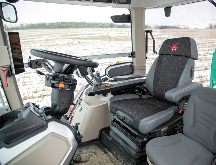 MF 8S Series tractors are built on a 10-foot wheelbase that provides stability and improves traction when working with wide, demanding implements, offering up to nearly 10% more traction power.