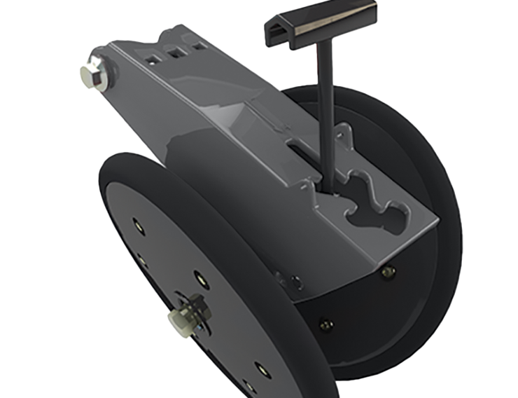 Ideal for medium- to high-residue levels, the 13-inch (330-millimeter) diameter pin adjust steel finger or SharkTooth wheels clear residue away from the seed opener. Adjusts in 1/4-inch (6-millimeter) increments.