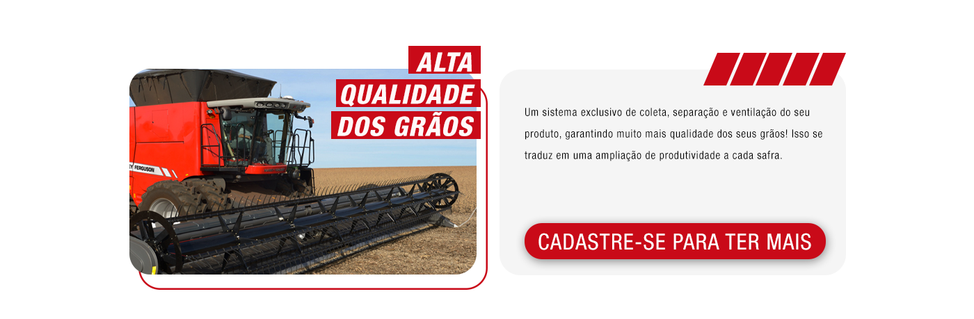 A colheitadeira Massey Ferguson garante o que a gente chama de Colheitabilidade! E é a máquina ideal para aumentar sua produtividade, qualidade e sucesso no campo.